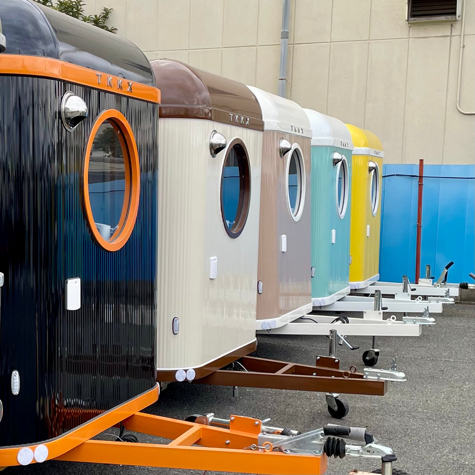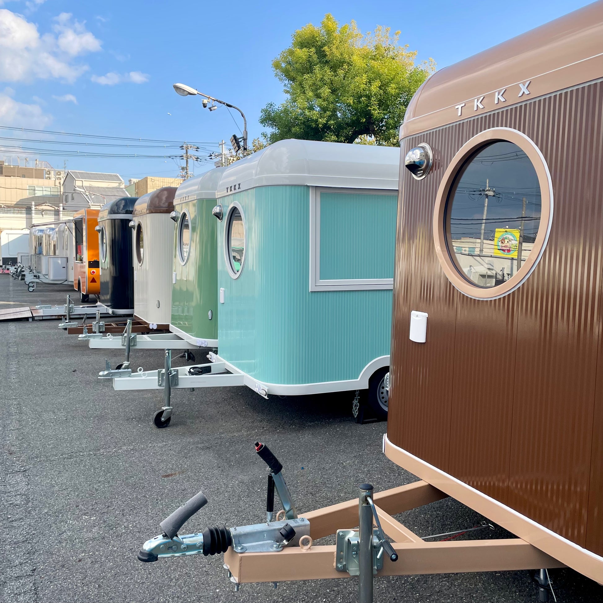 オプションでアクリル内窓・慣性ブレーキ・2槽シンク&ステンレス作業台・収納棚・販売口カウンターテーブル・エアコン・冷蔵庫・冷凍庫・厨房機器等の取付可能です。